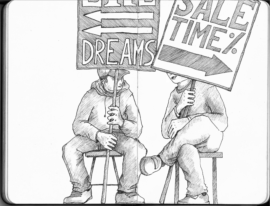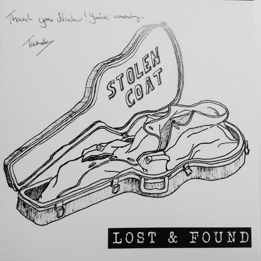 Este post es promoción del grupo al que le hice la portada del disco y que son unos buenos amigos y músicos (como dibujos adjunto la portada y uno de los bocetos que no se incluyó) -> http://stolencoat.com/